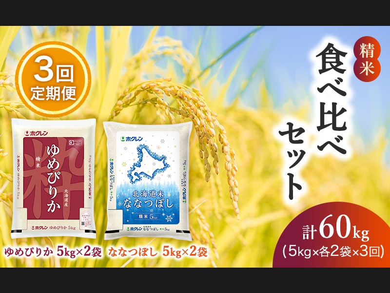 隔月3回 定期便 (精米20kg)食べ比べセット(ゆめぴりか:10kg、ななつぼし...