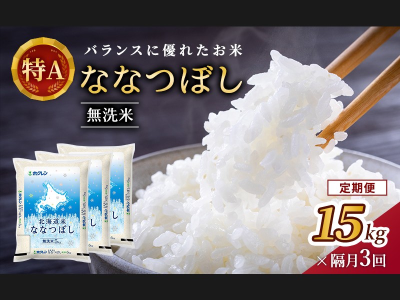 隔月3回 定期便 (無洗米15kg)ホクレン北海道ななつぼし(無洗米5kg×3袋) 北...