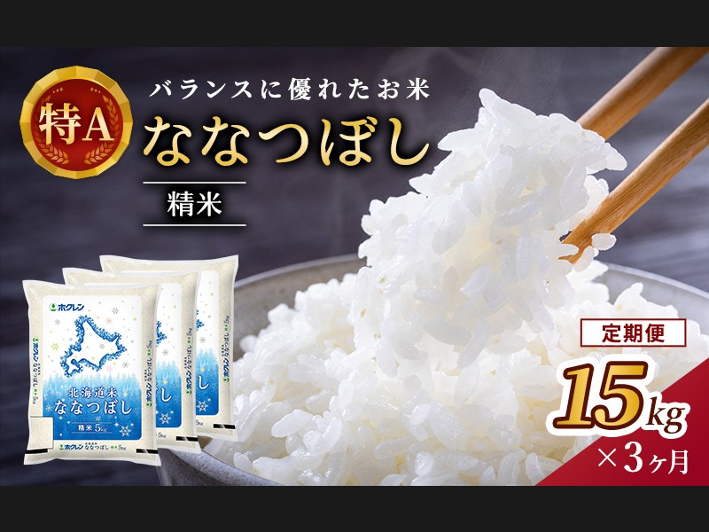 3ヵ月 定期便 (精米15kg)ホクレン北海道ななつぼし(精米5kg×3袋) 北海道米...