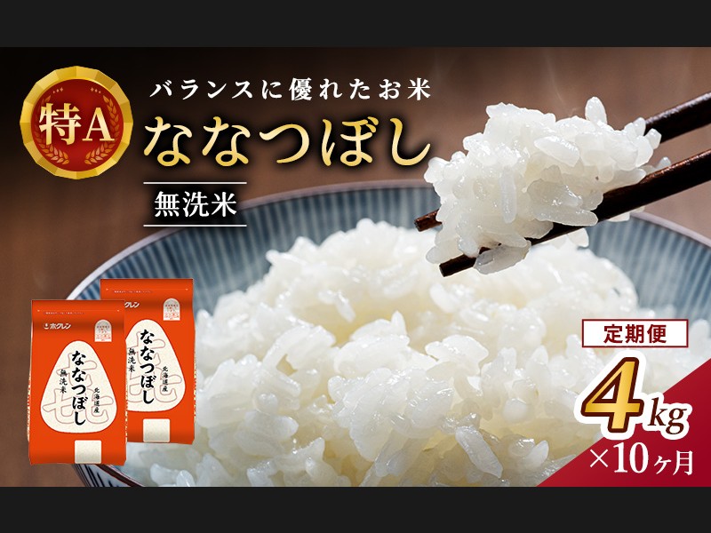 10ヵ月 定期便 (無洗米4kg)ホクレン喜ななつぼし(無洗米2kg×2袋) 北海道米...