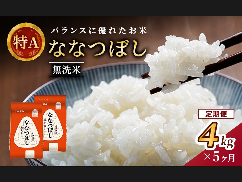 5ヵ月 定期便 (無洗米4kg)ホクレン喜ななつぼし(無洗米2kg×2袋) 北海道米 ...
