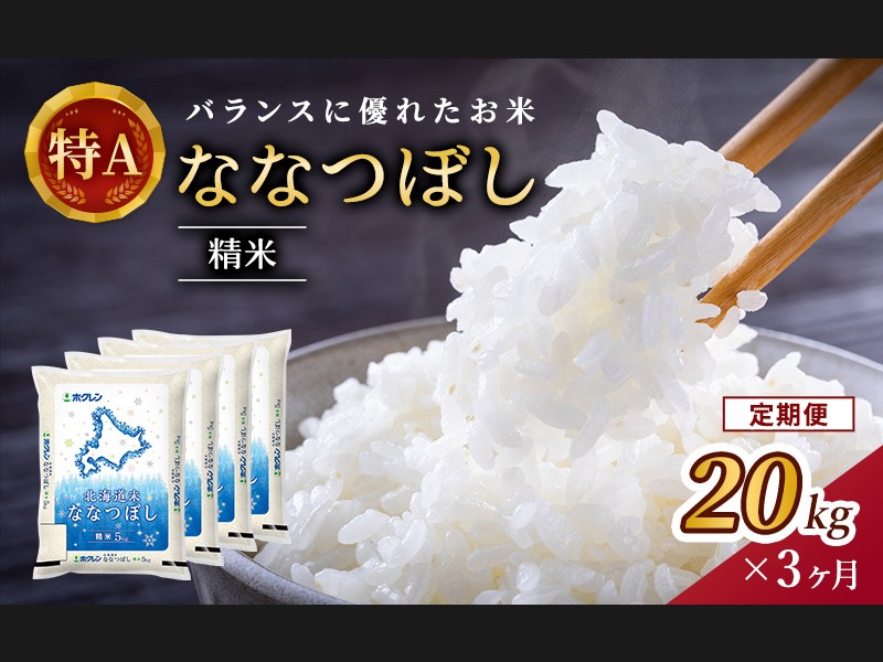 3ヵ月 定期便 (精米20kg)ホクレン北海道ななつぼし(精米5kg×4袋) 北海道米...