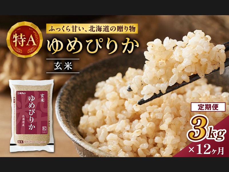 12ヵ月 定期便 (玄米3kg)ホクレンゆめぴりか(3kg×1袋) 北海道米 お米 玄米...