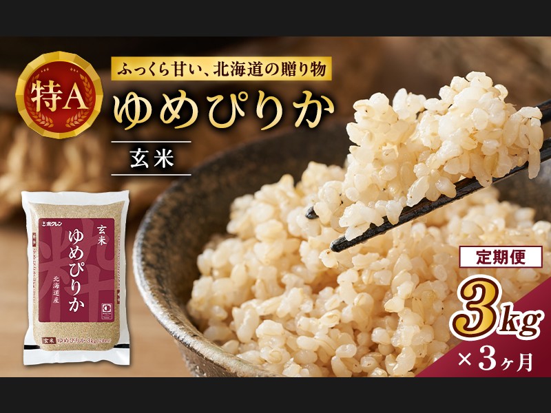 3ヵ月 定期便 (玄米3kg)ホクレンゆめぴりか(3kg×1袋) 北海道米 お米 玄米 ...