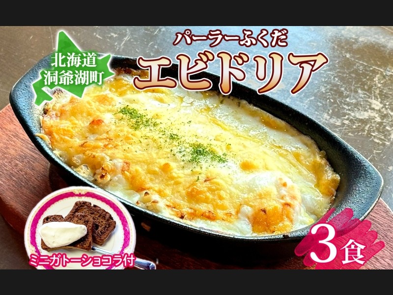パーラーふくだ特製 エビドリア 計3食 ミニガトーショコラ付 北海道 エビ ...