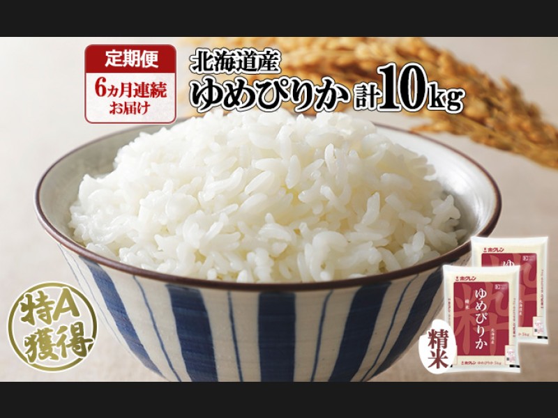 定期便 6ヶ月連続6回 北海道産 ゆめぴりか 精米 10kg 米 新米 特A 白米 お...