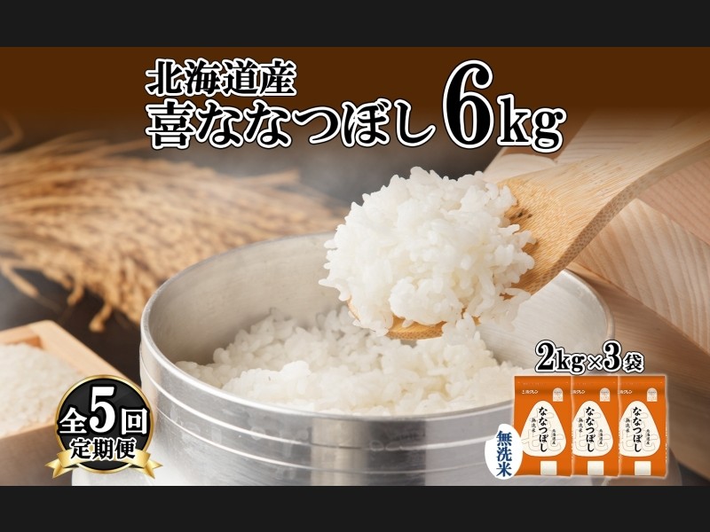 定期便 5ヵ月連続5回 北海道産 喜ななつぼし 無洗米 6kg 米 特A 白米 なな...
