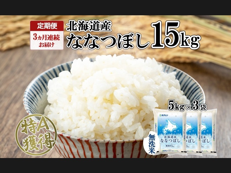 【3ヵ月連続/全3回お届け定期便】 北海道産の特A米『ななつぼし』無洗米 15kg(5kg×3袋)×全3回をお届け! ほどよい甘みと粘りのバラン...