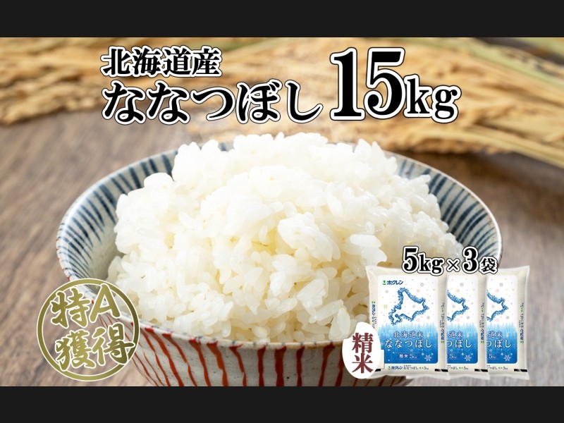 北海道産の特A米『ななつぼし』精米 15kg(5kg×3袋)をお届け! ほどよい甘みと粘りのバランスがよく、冷めても美味しいためお弁当にお...