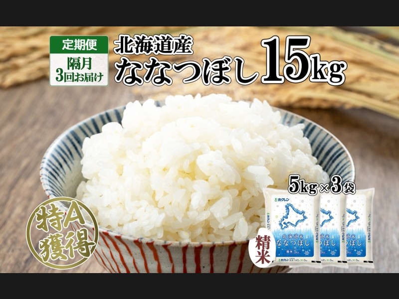 定期便 隔月3回 北海道産 ななつぼし 精米 15kg 米 特A 白米 お取り寄せ ...
