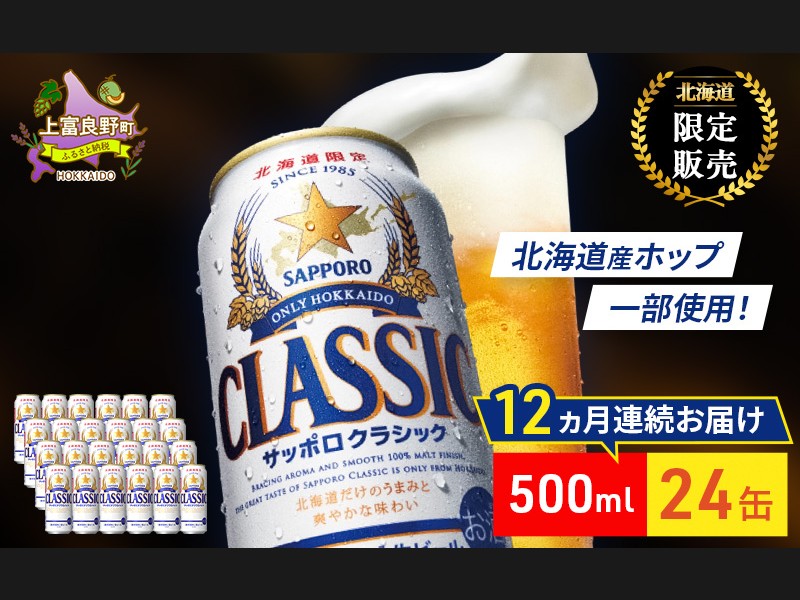 【12回定期便】ビール サッポロクラシック 500ml×24缶 缶ビール 定期便 お...