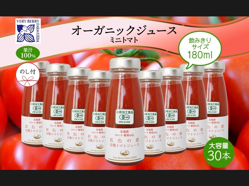 《無地熨斗対応》 ■果実だけをまるごと搾った、オーガニックミニトマト果汁100%ジュース「紅色の恵」30本セット 北海道の農園で、...