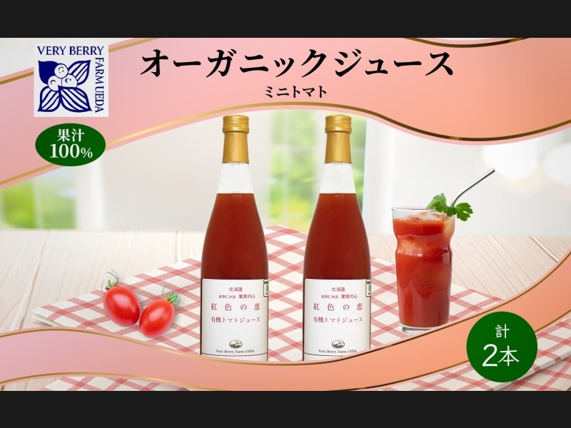 ■果実だけをまるごと搾った、オーガニックミニトマト果汁100%ジュース 2本セット 北海道の農園で、人の手で丁寧に有機栽培された「...