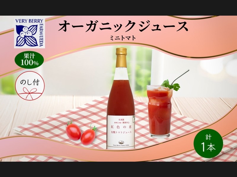 ■果実だけをまるごと搾った、オーガニックミニトマト果汁100%ジュース 北海道の農園で、人の手で丁寧に有機栽培された「ミニトマト...