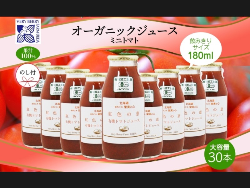 ■果実だけをまるごと搾った、オーガニックミニトマト果汁100%ジュース「紅色の恵」30本セット 北海道の農園で、人の手で丁寧に有機栽...