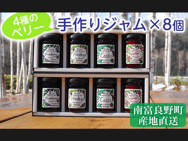 4種のベリー手作りジャム8個セット 北海道 南富良野町 ジャム ブルーベリ...