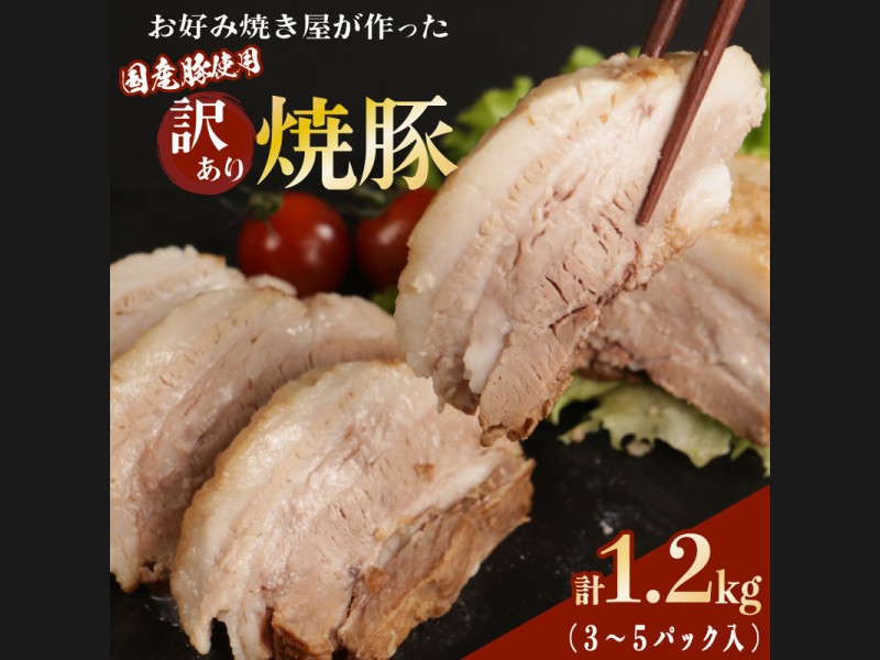 訳あり 【焼豚ブロック】 計1.2kg (3~5パック入) お好み焼き屋が作っ...