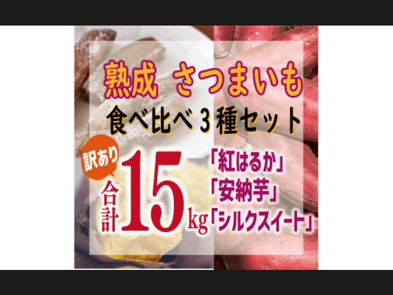 じっくり熟成させた「紅はるか」「安納芋」「シルクスイート」のさつまいも3種を合計15kgのセットにいたしました。 愛媛県愛南町育ちの...