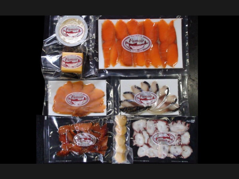5種の魚介のスモークの詰め合わせセットです。 昔ながらの方法で北海道のミズナラのおがくずでスモークした逸品。 岩塩原料の「あらしお...