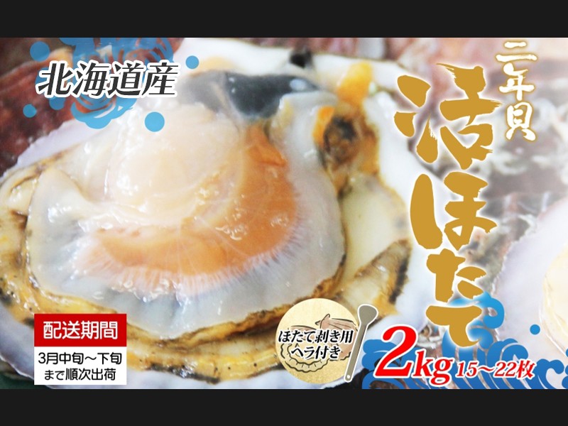 北海道産 活ほたて 2年貝 約 2kg 15枚~22枚 2026年3月中旬~3月下旬頃お...
