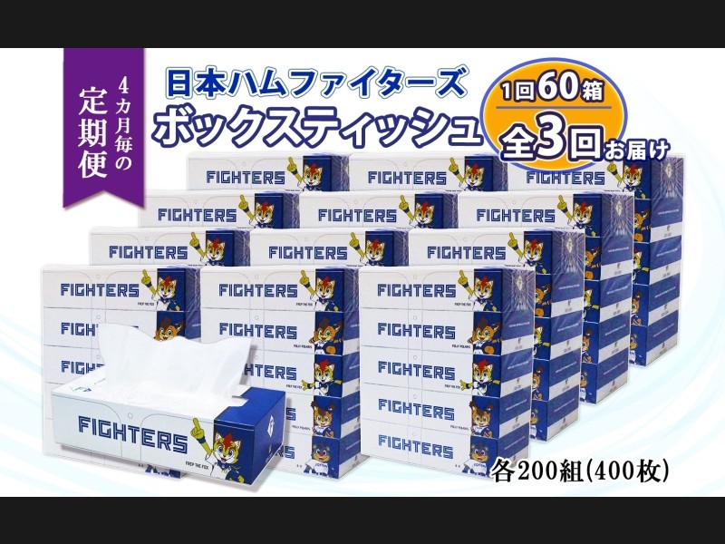 北海道 定期便 4ヵ月毎 全3回 日本ハムファイターズ ボックスティッシュ 2...