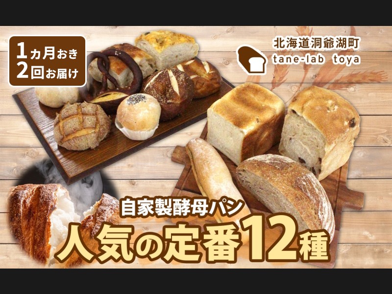 【1ヵ月おき2回お届け】 店頭で人気のラインナップが勢揃い! 北海道洞爺湖町より「自家製酵母パン 人気の定番セット」をお届けします...