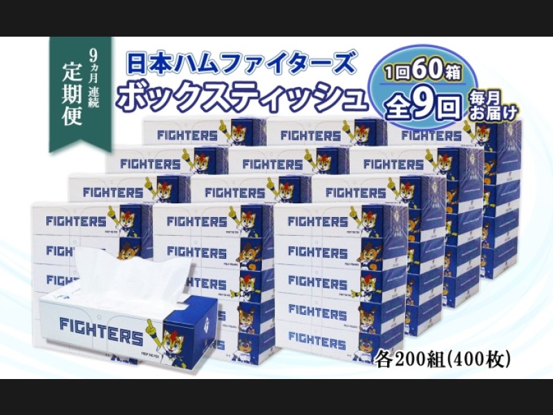 定期便 9ヵ月 連続9回 北海道 日本ハムファイターズ ボックスティッシュ 2...