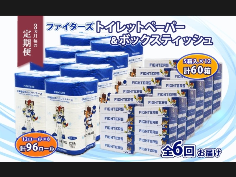 【3ヵ月毎全6回お届け定期便】 見て嬉しい!使って楽しい!北海道日本ハムファイターズデザイン♪ 生活必需品のトイレットペーパー&ボッ...