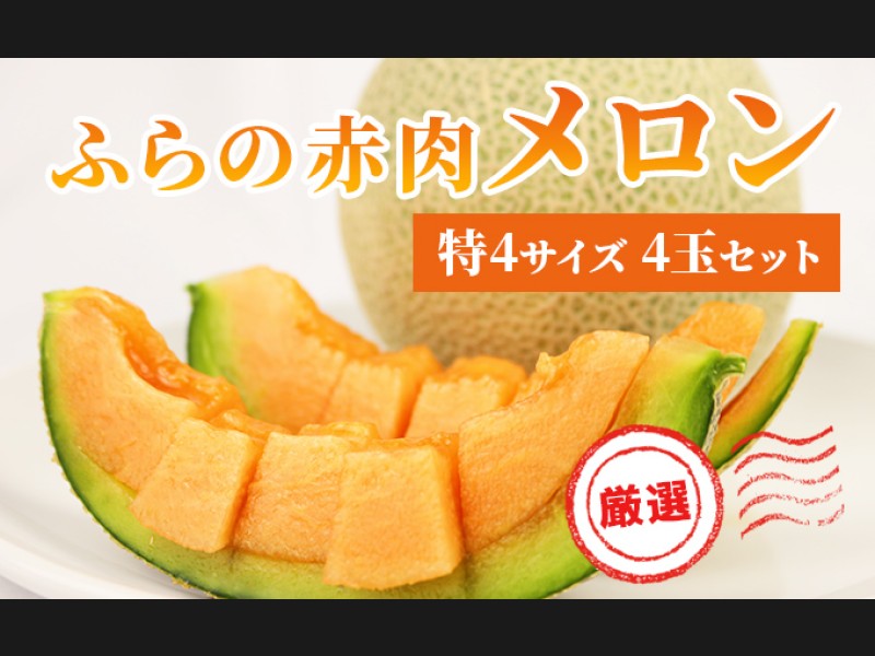 【令和8年産】ふらの 赤肉メロン 厳選 甘味 特4サイズ 2kg~2.6kg 4玉 セ...