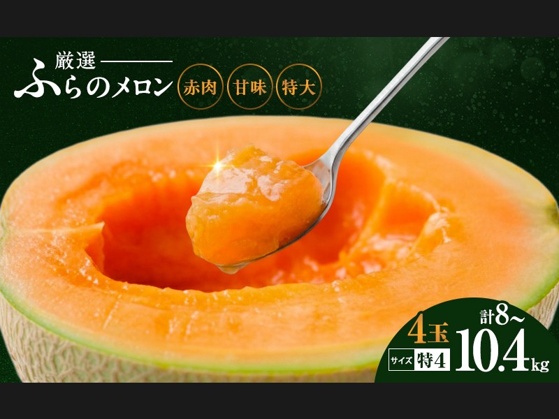【令和8年産】ふらの 赤肉メロン 厳選 甘味 特4サイズ 2kg~2.6kg 4玉 セ...